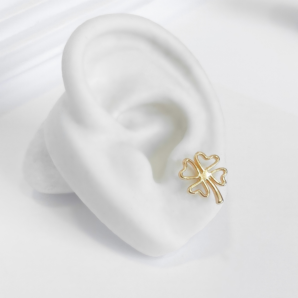CARACTERÍSTICAS: Brinco trevo com caule em banho de ouro 18k de 4 milésimos.
