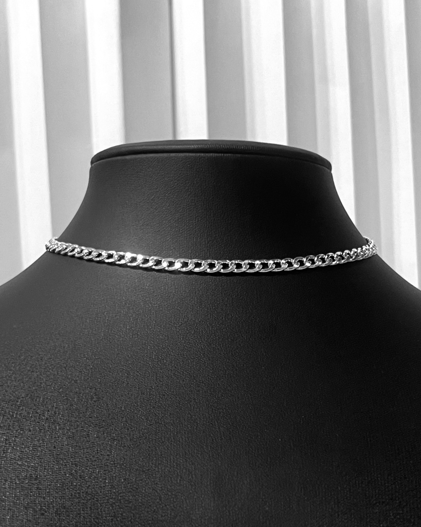 CARACTERÍSTICAS: Colar chocker, com corrente groumet, em banho de prata.