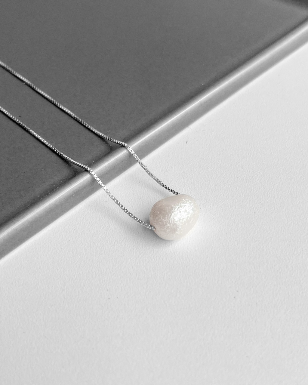 CARACTERÍSTICAS: Colar em prata 925, com pérola bege sintética irregular.