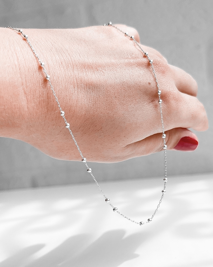 CARACTERÍSTICAS: Colar em prata 925, em elos intercalados com bolinhas.
