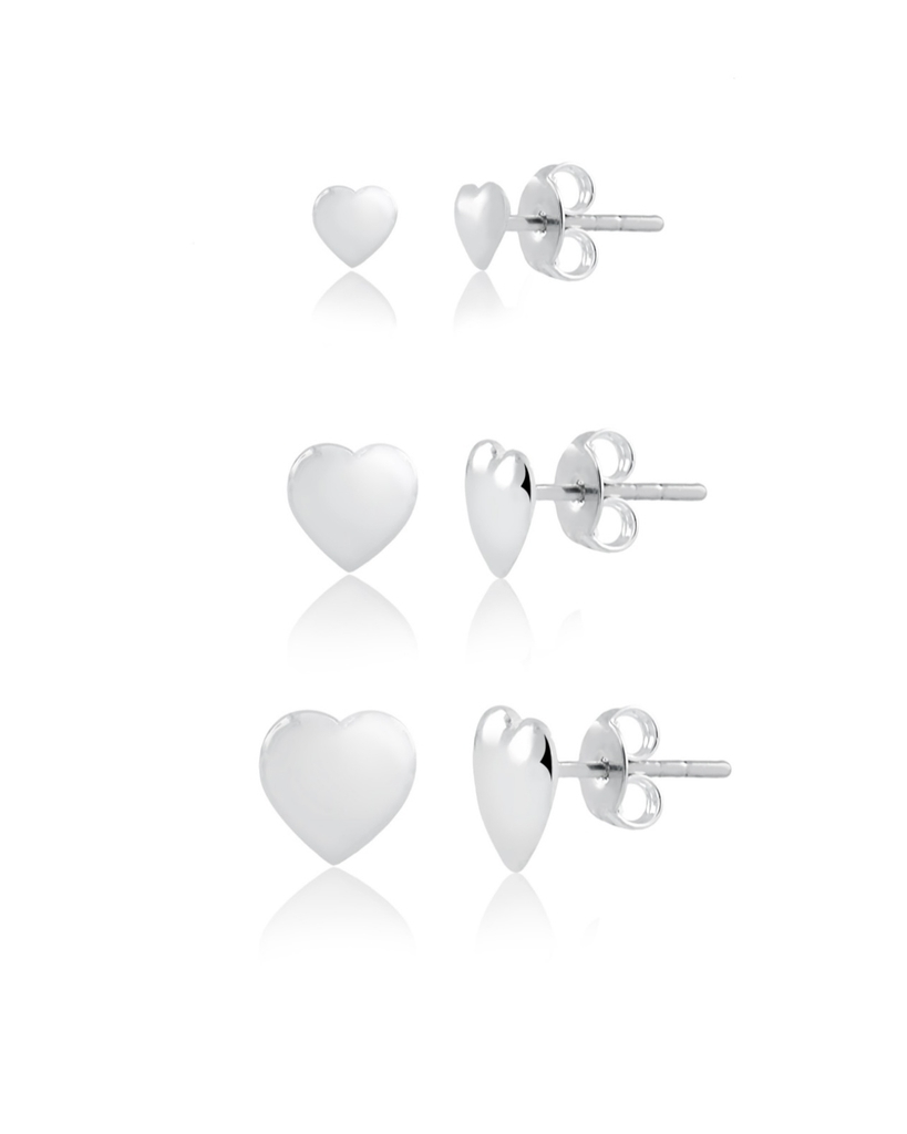 CARACTERÍSTICAS: Trio de brincos em prata 925 com formato coração e tarraxa borboleta.